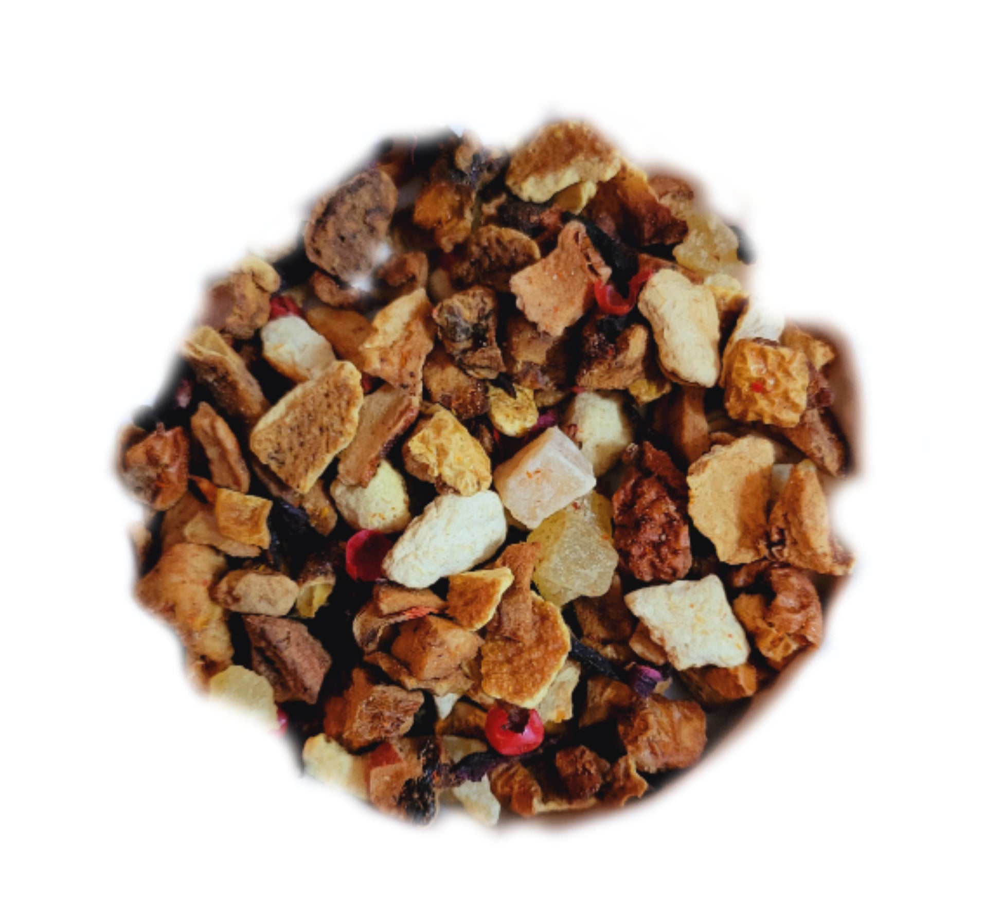 Elora Tea seeks out premium loose leaf teas, and offers these at value prices to our customers. A bright, caffeine-free citrus blend bursting with natural fruit sweetness and gentle spice. Juicy pineapple and papaya pieces, crisp apple, and citrus mingle with delicate safflower petals and a subtle pink peppercorn finish for a vibrant, feel-good cup—hot or iced.